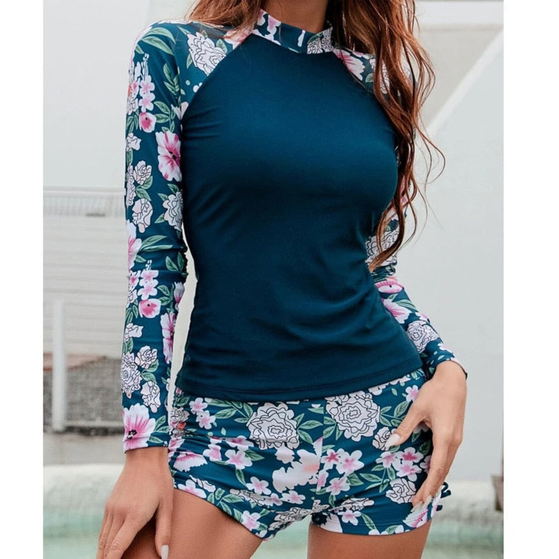 Women's Swimsuit Tankini Set Female Long Sleeves Swimwear 2022 Surfing Sports Pool Beachwear Two-Piece Bathing Suits With Shorts